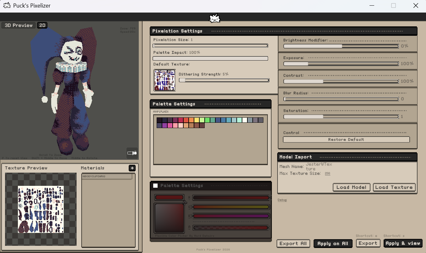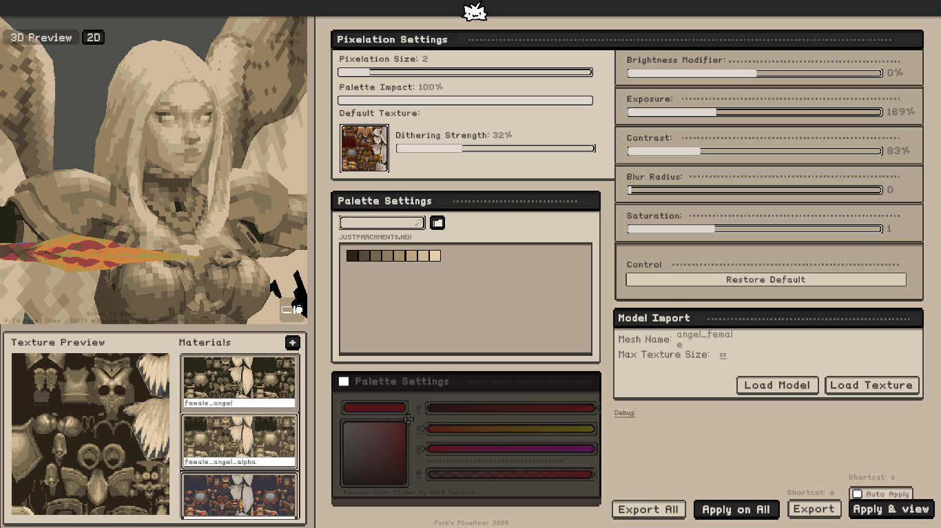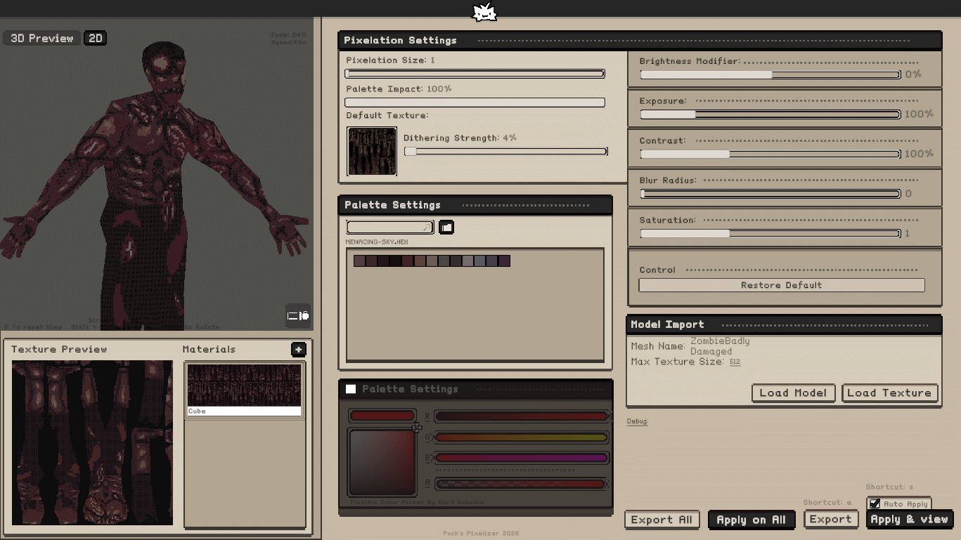 An all in one tool that helps you pixelate and see real time changes on your models.